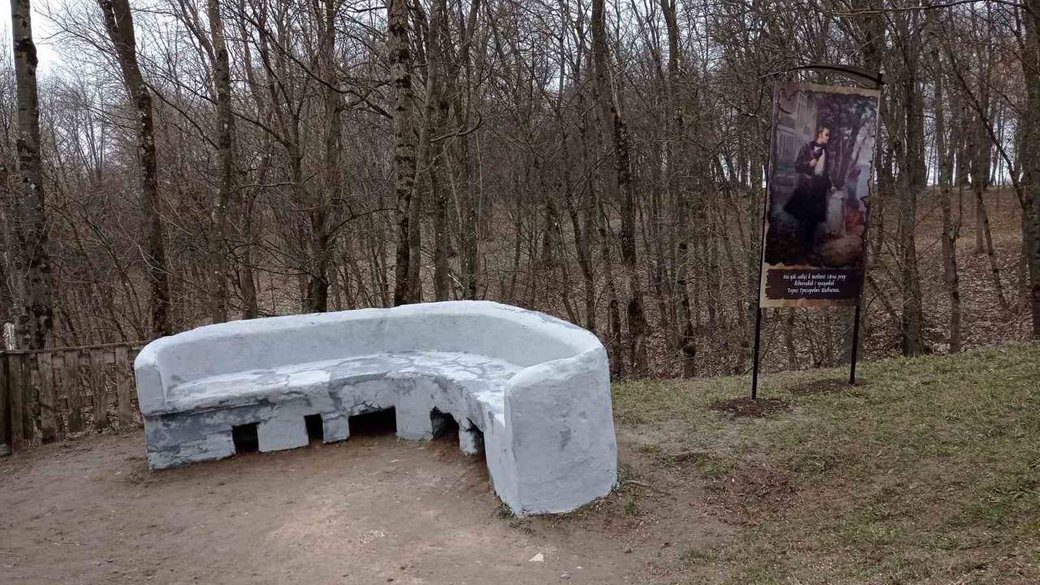 Єдине, що у парку й досі стоїть ота кам’яна лавочка. Її називають шевченковою. Саме з неї Тарас Григорович нібито й зробив ескіз замку з боку старого Вишнівця та призамкової церкви.